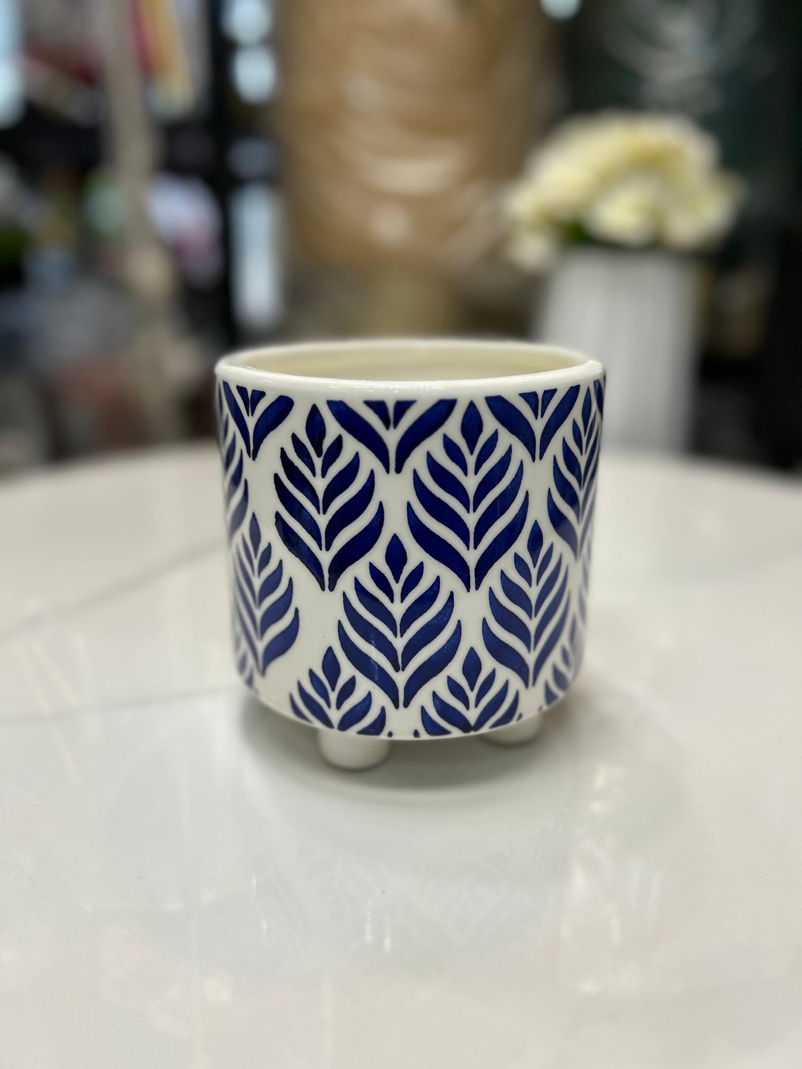 Étiquette : Ceramic Ftd Leaf Pattern Pot Blue 13*13cm