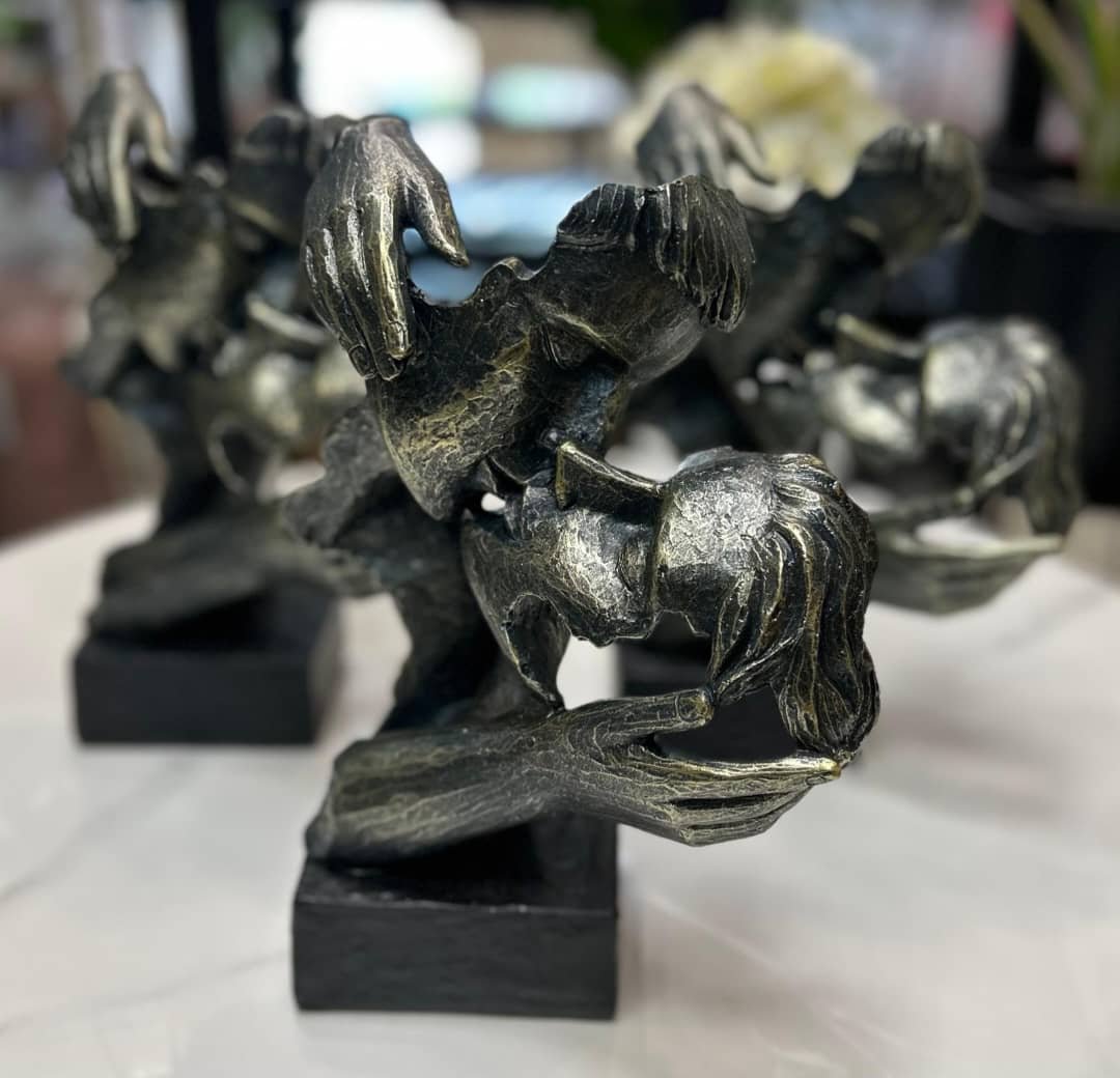 This sculpture stands at a height of 28cm, making it a striking centerpiece while remaining subtle enough to blend with your existing decor. Handcrafted with precision, attention is paid to every detail—from the smooth lines to the intricate design highlighting the intimate embrace of two lovers. Made with durable, eco-friendly resin material, this artwork is built to last while retaining its captivating allure for years to come.