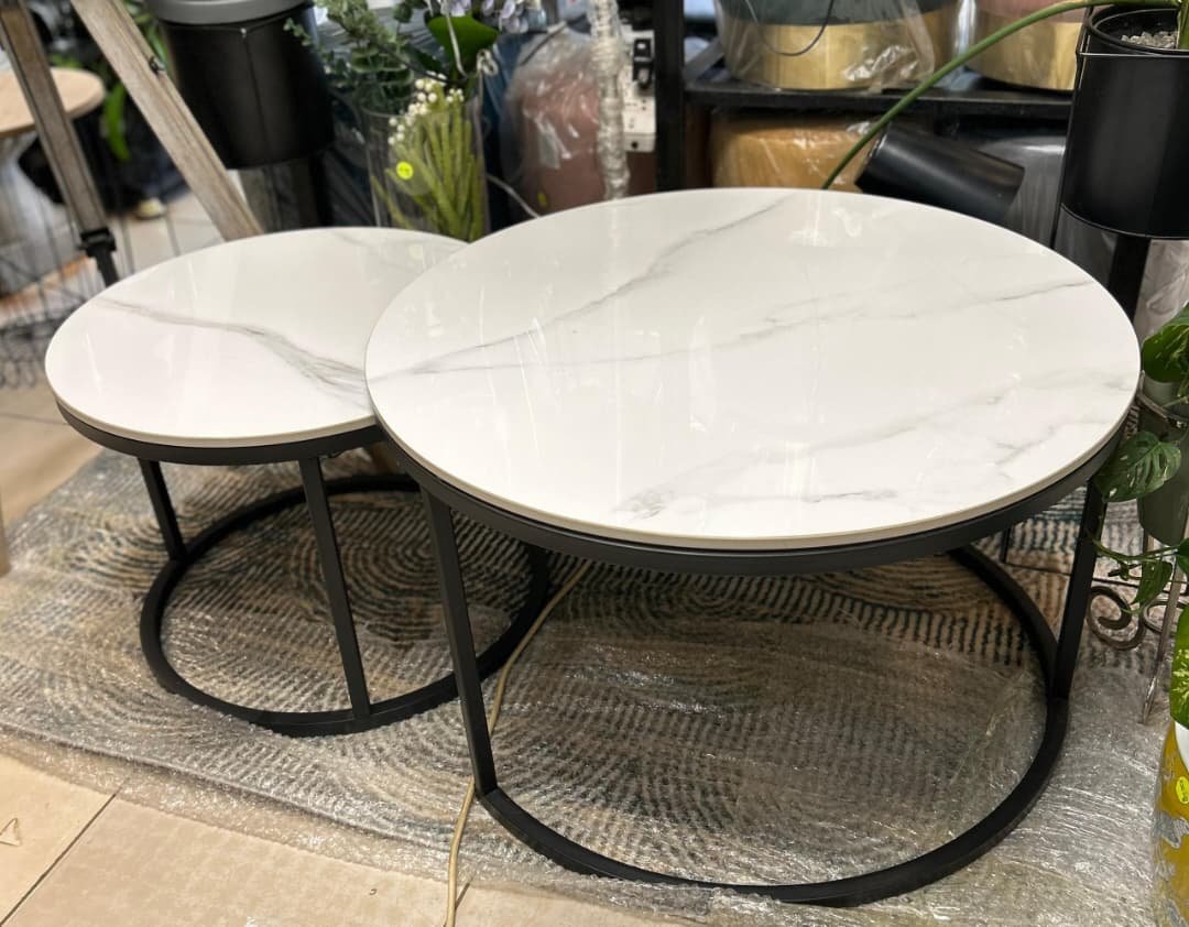 Table BK wht Top Gion Set 2Pcs Marble Stone