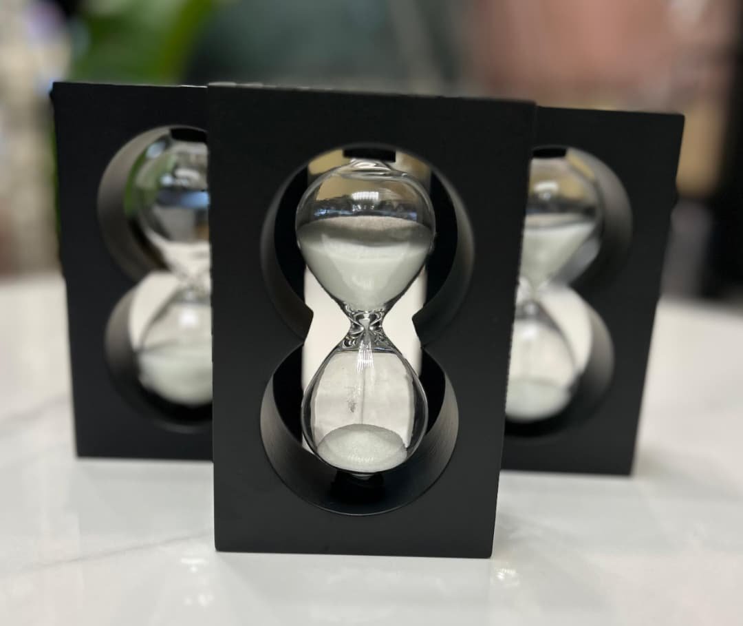 Étiquettes : 5, 8 Min, Trian glass timer Black frame 3